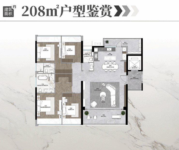 此外,项目更同步在售R11栋ultra级大平层产品,板式住宅,三梯三户,每一套都享有独立入户+电梯厅空间。建面约151-208平大平层产品,更演绎着家庭的终极居住理想形态。