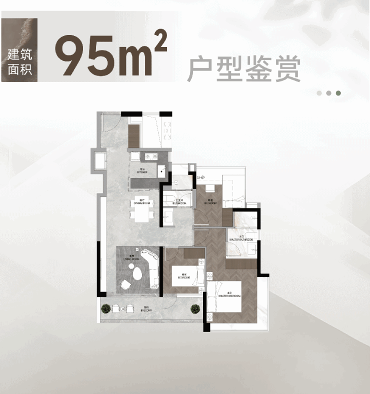 这种大平层式的公区体验,让95平的户型也能承载120平的生活品质。
