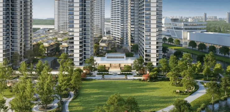 17号线地铁口,水系公园环抱