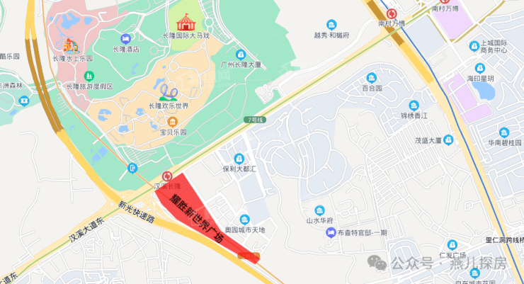 耀胜新世界广场项目位于万博-长隆商圈三轨交汇枢纽之上,三号线和七号线及佛莞城际轨道线交汇, 生活圈串连起珠江新城中央商务区、高铁南站及白云机场,快速便捷辐射东莞、广州、佛山三个大湾区城市。