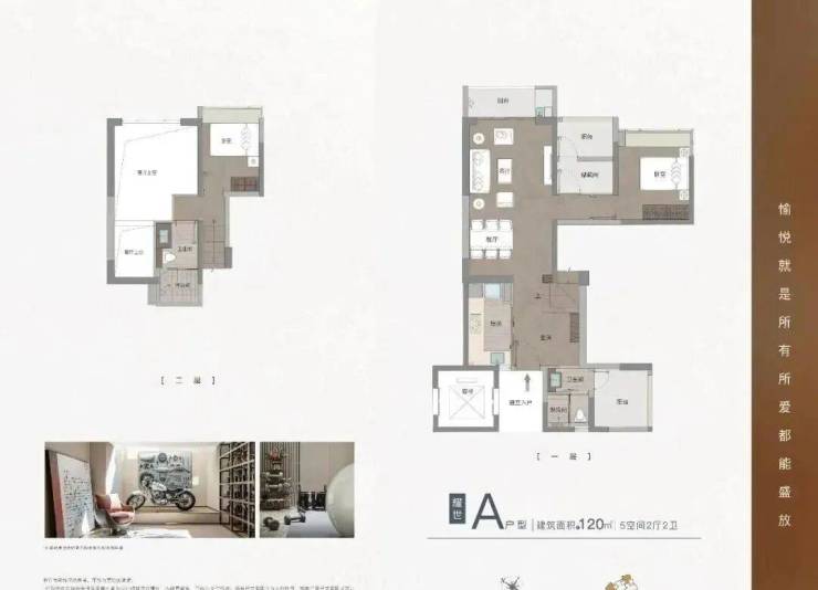 相比之下,项目的复式产品整体没有平层产品方正,比如下面这个120㎡的户型: