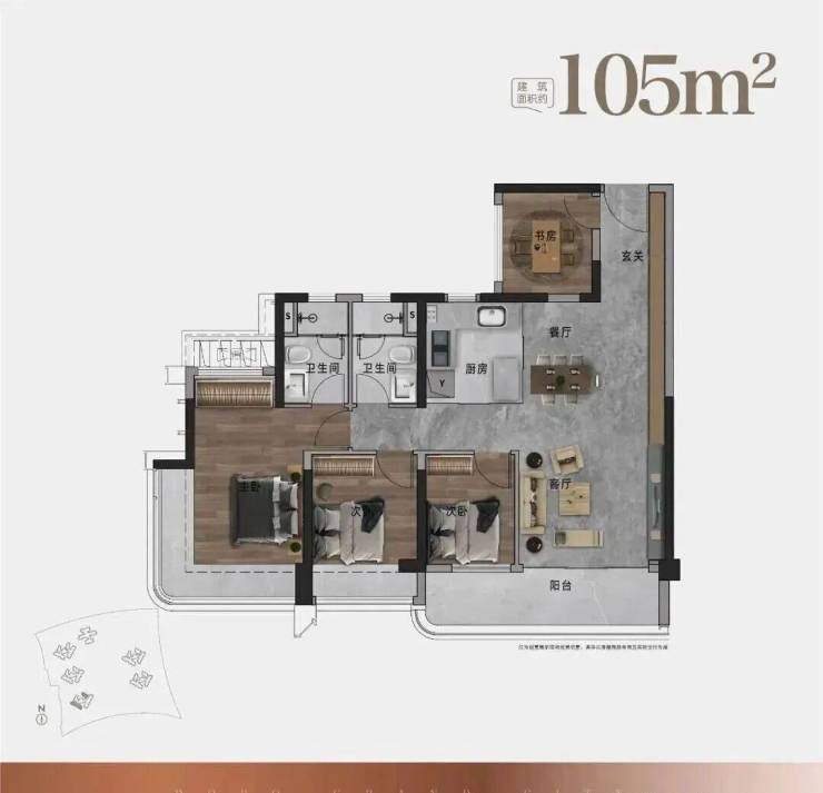 105㎡户型:约6.1M巨幕阳台 | 270°环幕瞰景主卧|LDKB一体化设计