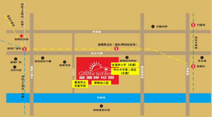 金海岸花园位于番禺亚运大道,坐落番禺新行政中心所在地--市桥东区中心,毗邻清河大道和黄金水道市桥水道。
