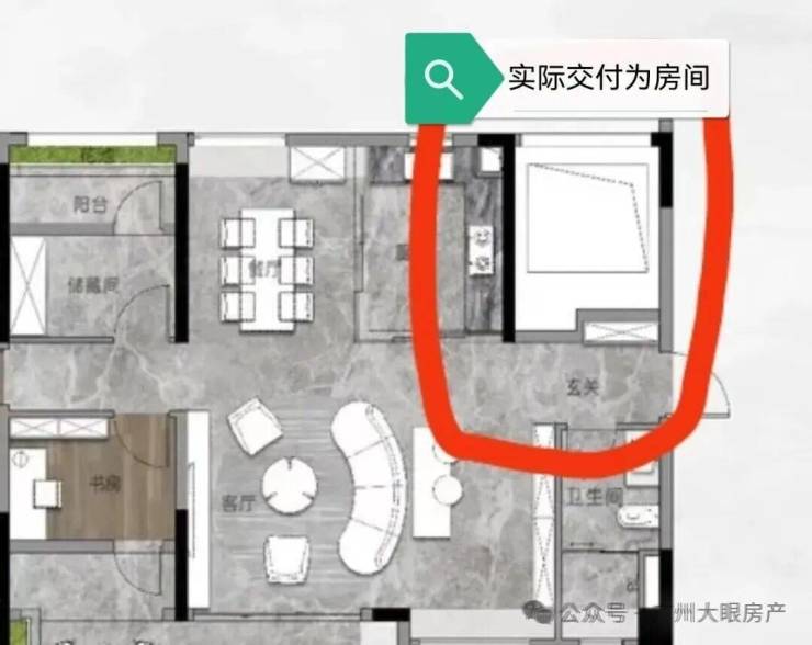 重点说一下125平这个户型,右上角空白处实际交付也是一个房间