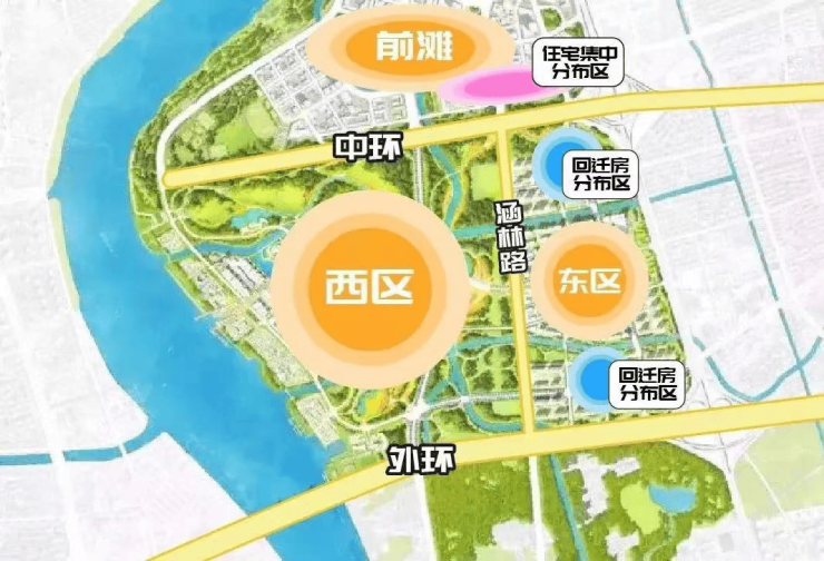 而前滩南滨江是紧贴着前滩的南面,二者的分界线就是中环路的道路中心线,是真正的“0”距离。