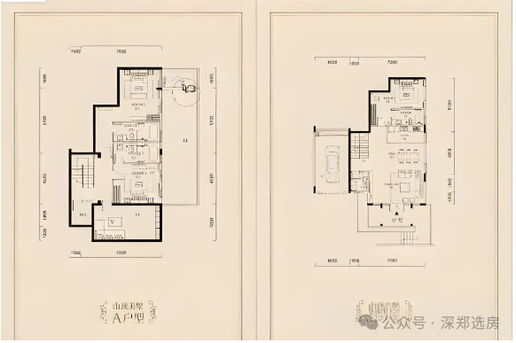 项目共分为两期开发,目前开发期,共有52套别墅,其中42套为独栋别墅,10套为双拼别墅,户型为380-1800㎡(建筑面积)不等,共14种户型。