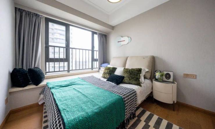 两个次卧飘窗也拉满,晨起,大夫山的漫林碧透便成为窗前的画,愉悦心情。