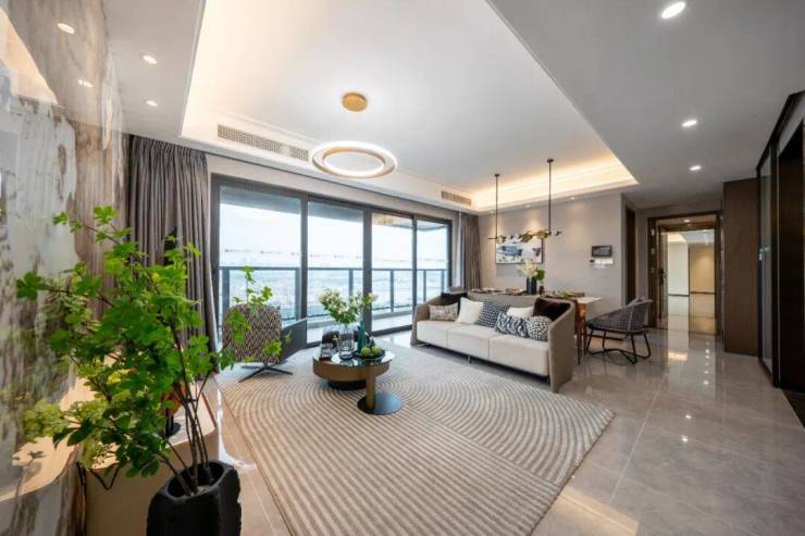一迈进去,约6.5米超大横厅,连着同面宽的阳台,在眼前铺开,窗外大夫山的葱葱郁郁席卷而来,体验震撼。