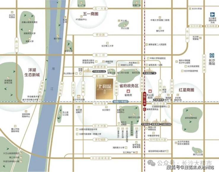 【省府正芯 湖湘政商声望高地】项目南临湘府路,东临新姚路,北临青山路,省政府“邻”距离,不可复制顶级政芯高阶圈层。