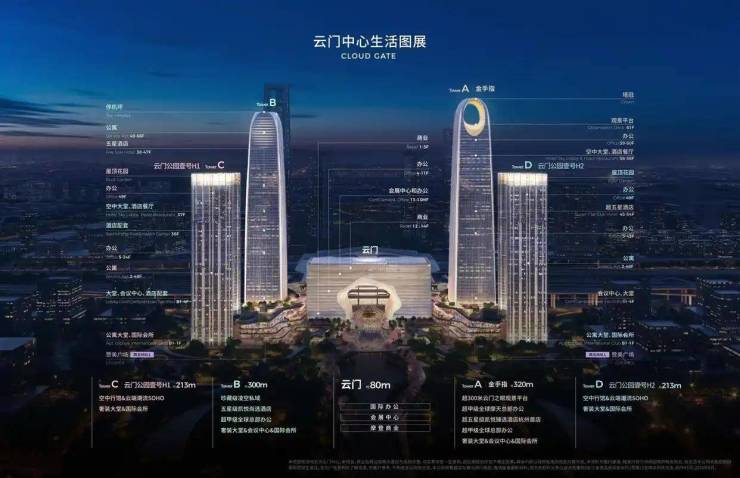 项目位于云城核心区,总建筑面积超32万方,总投资约43亿元。由两幢隔河相望的超高塔楼组成。
