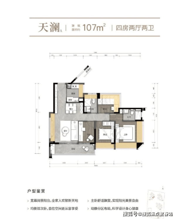 107㎡四房双阳台+主卧套房,改善一步到位