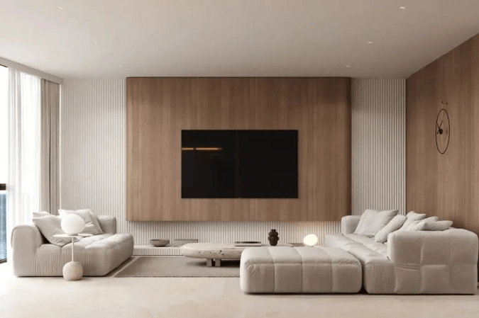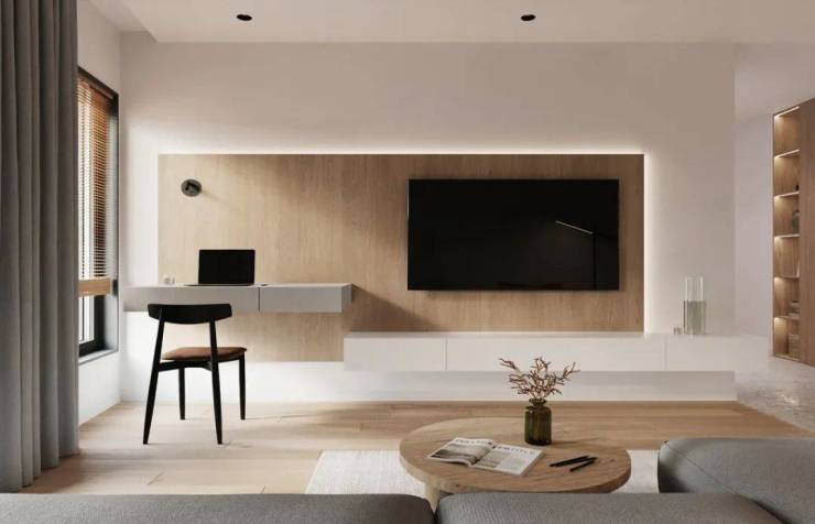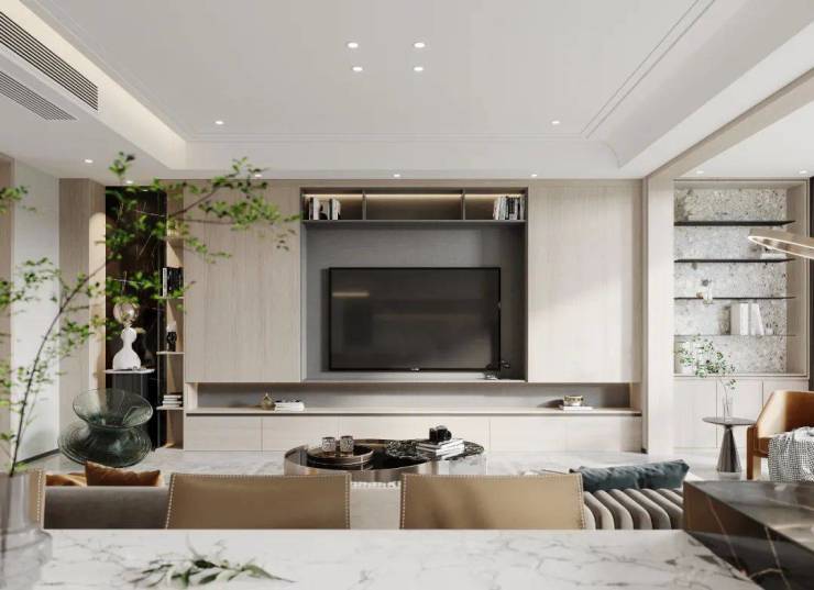 对于面积不大的户型来说,整面墙的电视柜会比较压抑,悬浮式的轻薄电视柜体能有效减轻厚重感,化繁为简,增加了空间活动面积,将客厅的高级感拉满,颇受消费者青睐。