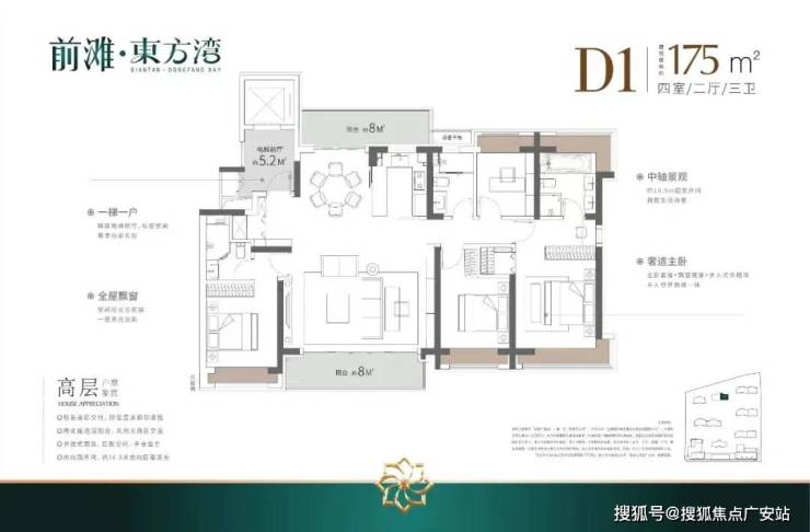 如果有进阶改善置业需求的客户,可以选择建面约140/175㎡4房2厅3卫!