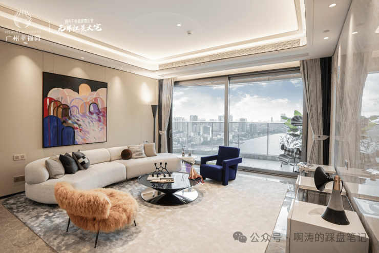 广州幸福湾,坐拥广州市区内稀缺2.4km的超长江岸线,对比黄浦江是其1.5倍,也是广州江景豪宅江岸线均值的4-5倍,其稀缺性可见一斑。