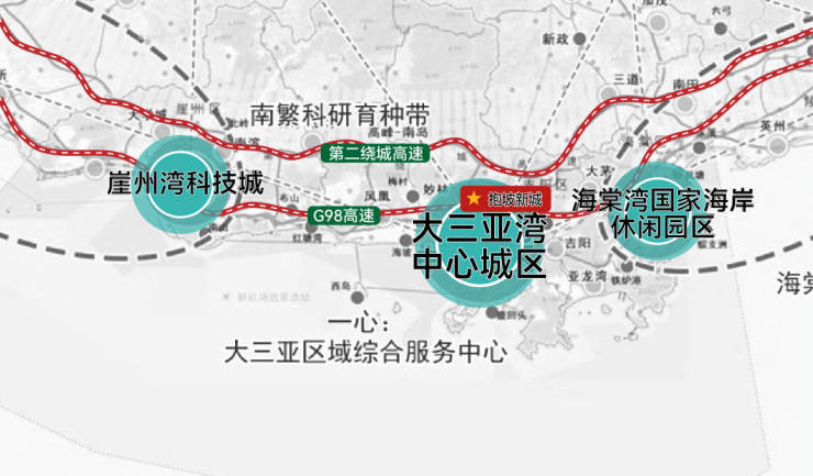 抱坡新城正位于“一心“(大三亚湾重要城区)的主要发展要地,是三亚城区向东联动海棠湾、向西联动崖州湾的关键枢纽。作为三亚城区的重点发展板块,它承载着“一心"的总部经济、现代服务业等重要功能,同时衔接“两翼”的产业资源既可以联动东翼海棠湾的国际旅游消费,也能对接西翼崖州湾的科技产业集群,是三亚“一心两翼”发展格局中,产城融合、资源聚合的关键节点。加上政府约600亿的重点投资,抱坡新城既是“一心”的综合发展支点,也是三亚面向国际的城市会客厅,堪称“大三亚”发展的关键引擎之一。