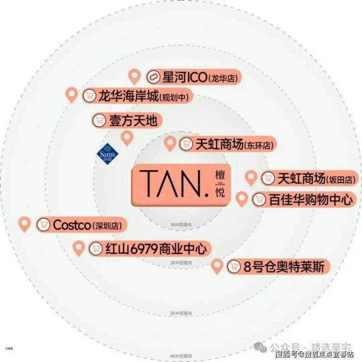 项目自带特色商业街,并且紧邻项目有天虹商场(东环店),距离壹方天地(建面约60万㎡航母级体验式商业集群)约1.5km,周边还有山姆会员店、天虹商场(坂田店)以及Costco会员旗舰店等,一站式满足不同生活需求。