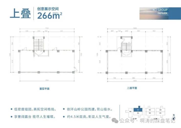 · 项目南区规划81席建面约191-311㎡环山企业叠拼,背山临水,每层层高约4.5米,下叠优享入户花园,上叠拥揽星空露台,以科学大道首排优势满足企业跃级形象展示。