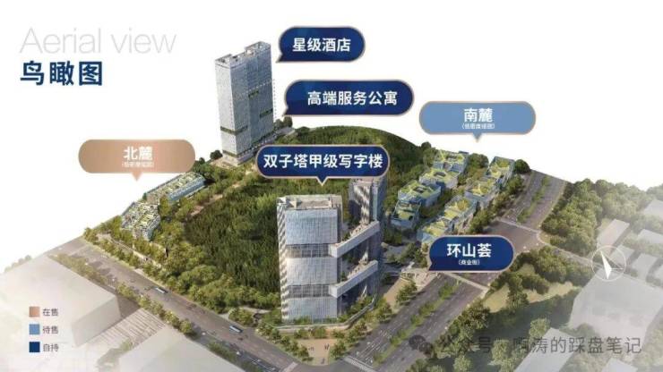 业态:集合双子塔甲级写字楼、低密度组团(北麓、南麓)、星级酒店、商业等一体的城市综合体