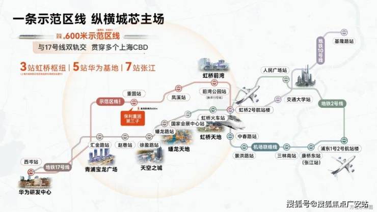 从项目出发步行进站后,向东3站即可抵达虹桥枢纽,向西5站即可直达华为科创基地!