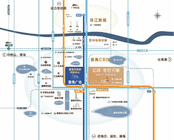 龙湖·金地天峯项目傲占番禺行政中芯,坐拥3大核心商圈、5大文化馆配套,周边三横五纵五轨交汇,由龙湖、金地双千亿房企联手打造、继珠江新城、琶洲后的又一城市轴心·TOD都会大城。