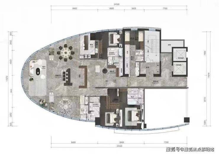 这个户型的设计虽然也是类似于游轮船头,但与A户型还是有点区别。