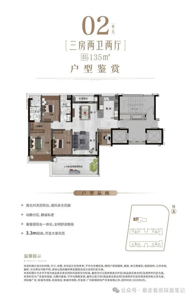 ◎02户型:建筑面积约135㎡舒阔三房。