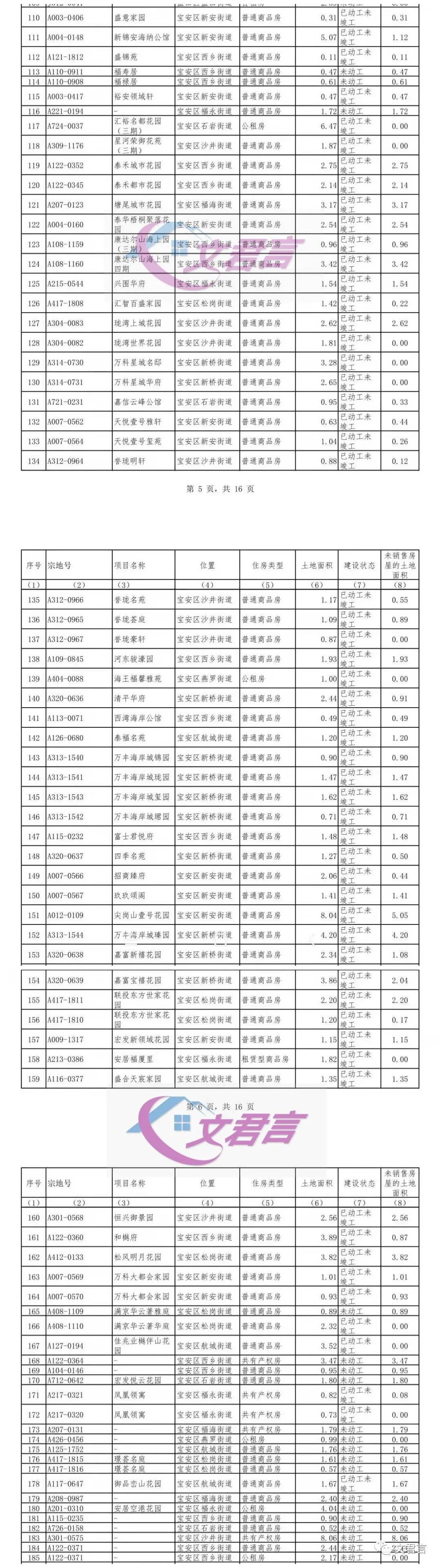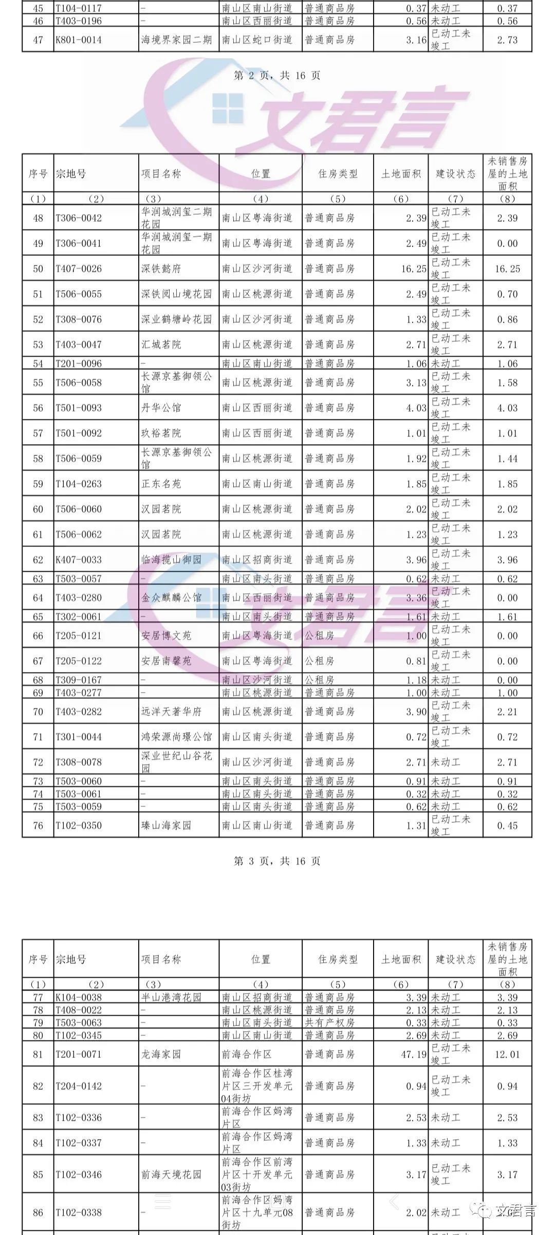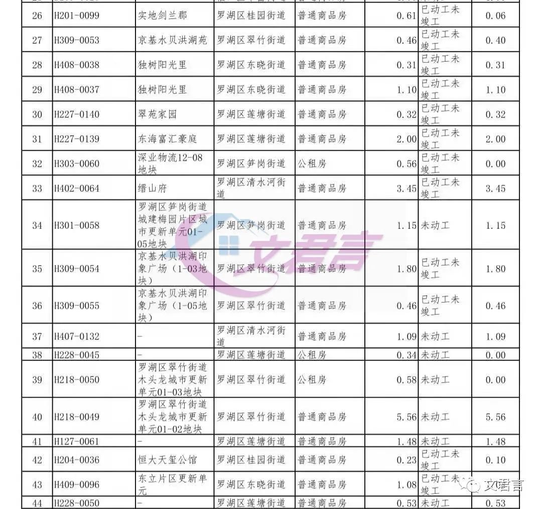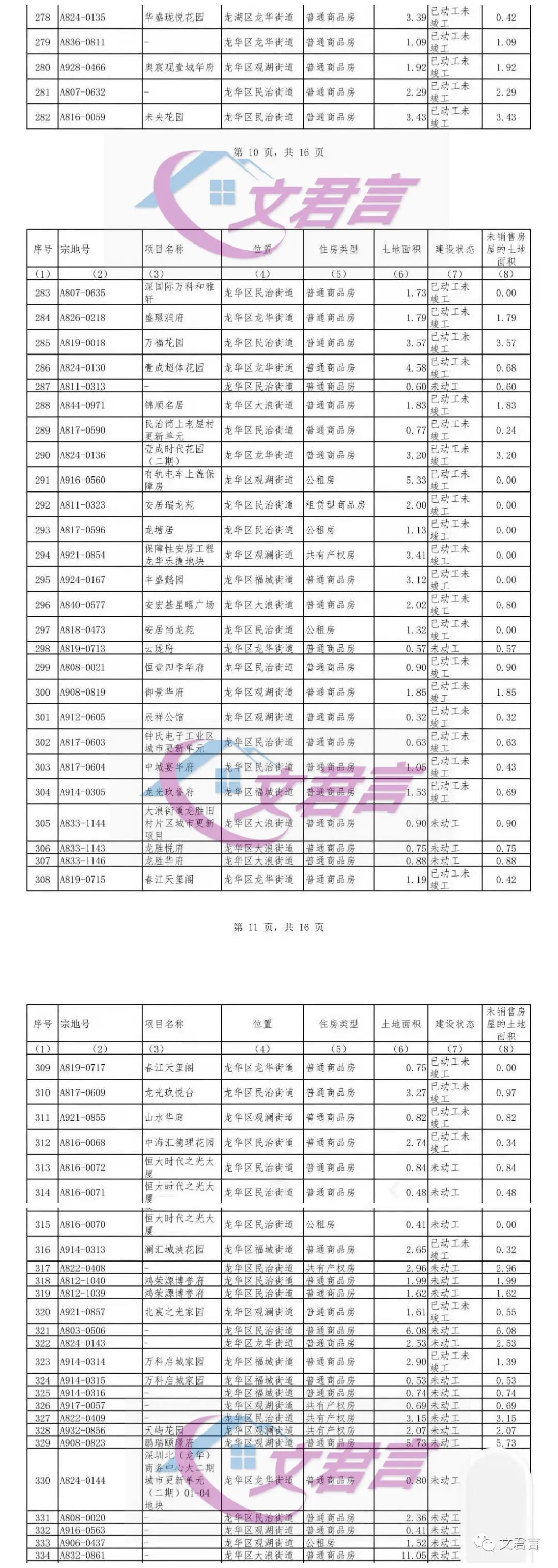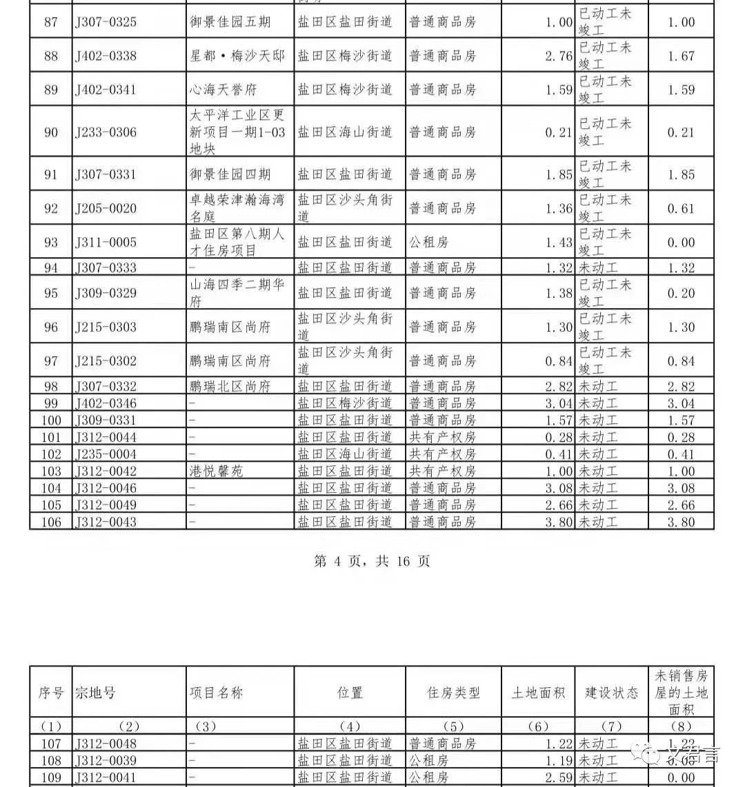 2020年12月31日,深圳规划和自然资源局发布深圳市存量住宅用地信息(截至2020年12月31日)。 信息显示,深圳存量宅地共有442个,总面积970.78公顷,未动工土地面积348.11公顷,已动工土地面积622.87公顷,其中已动工未销售土地面积为307.74公顷。 其中,龙岗区存量住宅项目最