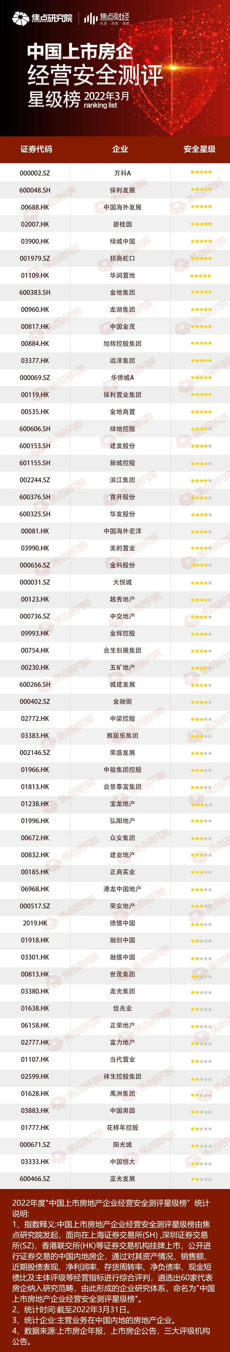中国上市房企经营安全测评:15家获五星评级,碧桂园旭辉榜上有名