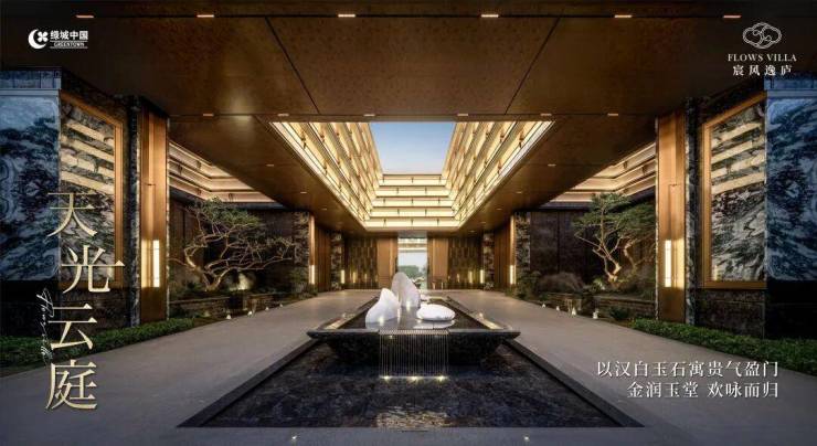 鼎筑约50米酒店式华盖门仪,进阶归家体验;引水入园,以溪涧、逸亭、瀑布、小桥约“150米中央景观水系松壑长风”;复刻《溪山清远图》。