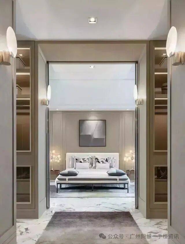 就拿主卧来说。一进门,就能感受严格对称带来的庄重和优雅。