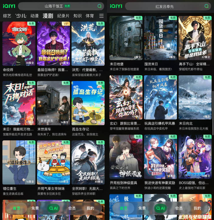 值得关注的是,平台间的界限正在模糊。就在不久前,爱奇艺上线漫剧频道,纳入了动态漫、沙雕漫等品类,内容和短视频平台的漫剧内容无异。