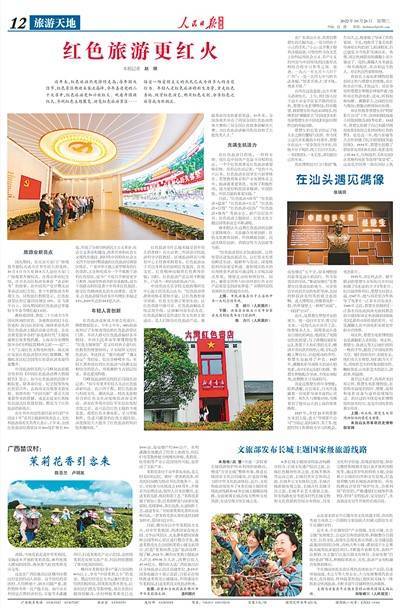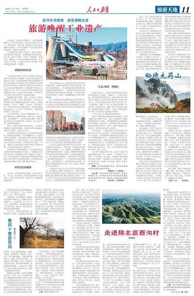 旅游天地版持续关注红色旅游、乡村旅游、工业旅游、生态旅游等重点业态,捕捉亮点,提炼观点。《红色旅游更红火》指出,今年喜逢党的二十大召开,红色旅游更加兴旺红火。年轻人是红色旅游的新生力量,重走红色圣地、欣赏红色演艺、购买红色文创、分享红色之旅等成为新潮流。《乡村旅游打造升级版》认为,乡村旅游日益成为拓宽农民增收致富渠道、建设美丽乡村的重要途径,我国乡村旅游发展将进入转型升级新阶段。《旅游唤醒工业遗产》亮出观点,很多工业遗产“变身”创意园区、景观公园、博物馆,成为市民休闲娱乐的场所,甚至“网红”打卡地。工业遗产活化为工业景观,成为发展城市旅游的一大趋势。《生态旅游路越走越宽》指出,如今一个个生态美的城市和乡村,成为人们休闲度假的好去处,也成为践行“绿水青山就是金山银山”的亮丽风景,越来越多的地方“吃生态旅游饭,走绿色发展路”。