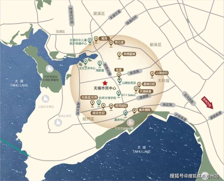 项目周边,无锡国际会议中心、奥体中心(建设中)构筑全球地标集聚地;海岸城、山姆会员旗舰店、K11 Select购物艺术中心(建设中)组成世界精英消费场;无锡美术馆(建设中)、国际网球中心等打造城市人文活力区。教育资源环伺,无锡师范附属太湖新城小学、无锡外国语学校等优质学府云集;贡湖湾湿地公园、尚贤河湿地公园等构成全球生态宜居高地;地铁4号线无缝接驳,无锡南站(规划来源:《无锡南站周边片区概念规划及枢纽地区详细设计》)更将打开长三角通勤新格局。
