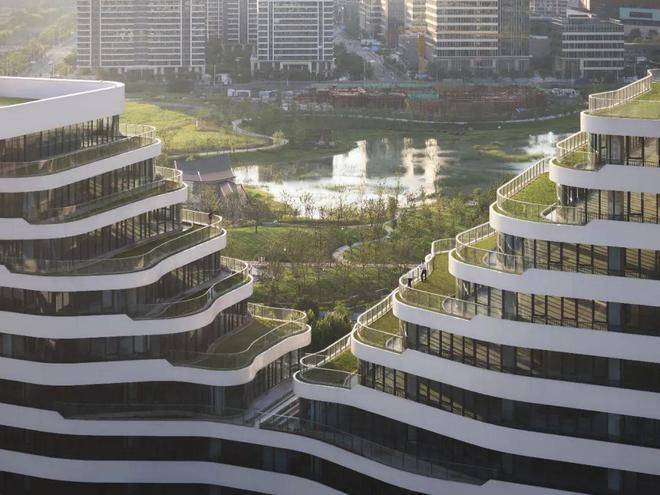 毗邻美兰湖高尔夫球场、美兰双湖, 坐拥超300亩生态绿洲,MAX科技园(上海·美兰湖)将科创与人文自然深度融合。园区内以1.3超低密度、打造“花园里的科创总部”。2.5倍高于行业绿化标准,全景落地窗,约4.5米层高,屋顶花园,不仅为企业提供健康办公场景,更预留着未来成长的空间。