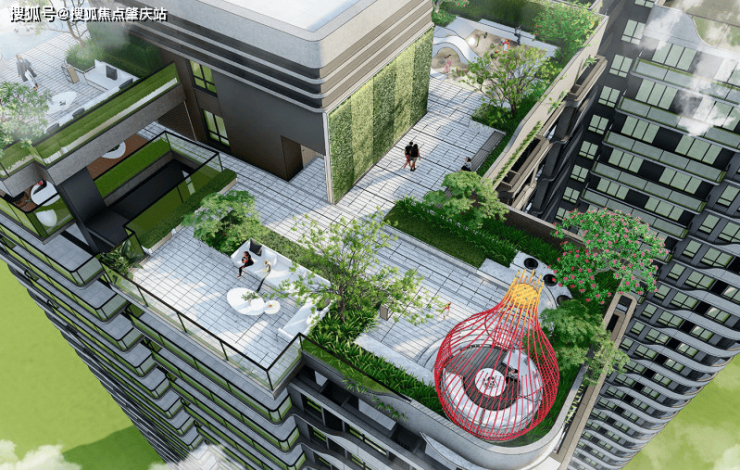 空中花园:顶层精心打造 “空中花园”,设有星空泳池、儿童戏水、静谧闲坐、临窗眺望、鸟巢卡座、儿童娱乐沙池等六个主题空间。