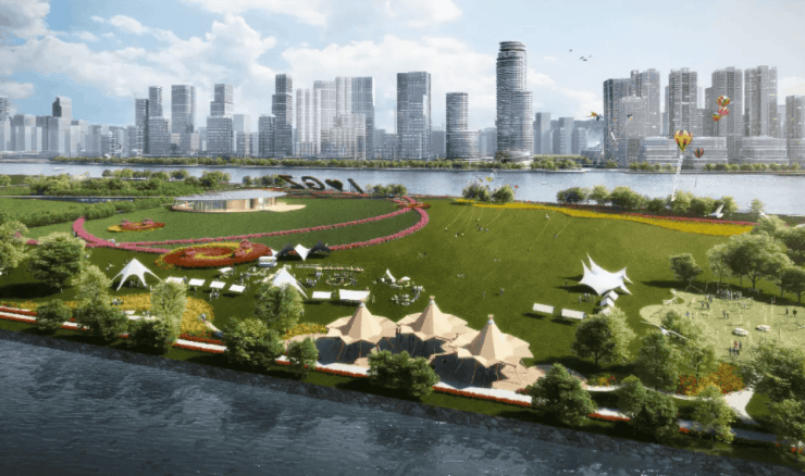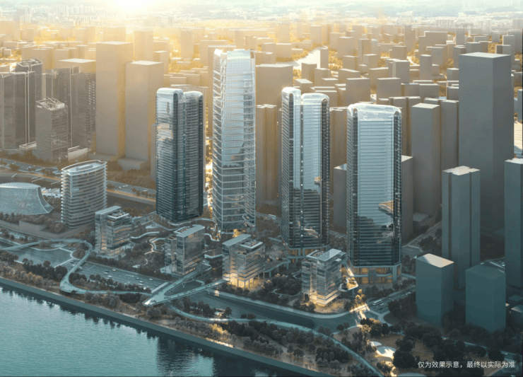 首期主要由两座分别楼高50层,总建筑高度210.3米以及楼高48层,总建筑高度202.5米的商业大楼组成,另在江边有两座矮座总部办公大楼。