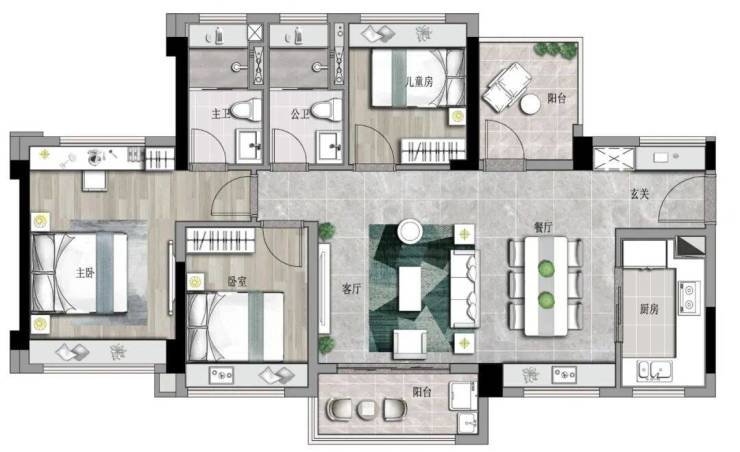 •东南向围合式布局,法线错开,近100米楼间距,向南迎纳阳光清风,户与户之间遮挡少,宜居且健康。