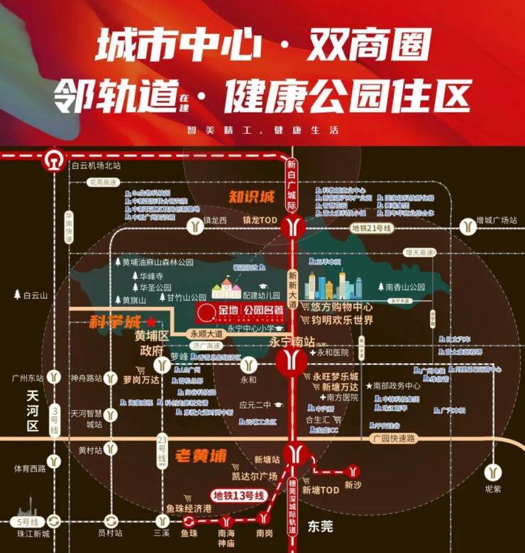 •高速:济广高速接驳科学城,实现30分钟科学城生活圈。增天高速修建中,实现高速串联天河市中心。