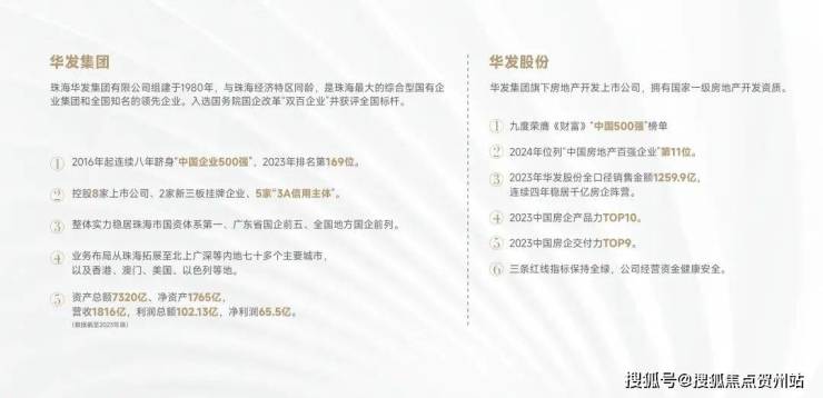 华发集团:组建于1980年,与珠海经济特区同龄,是珠海最大的综合型国有企业集团和全国知名的领先企业。入选国务院国企改革“双百企业”并获评全国标杆,2023年中国企业500强169位。(数据截至2023年底)