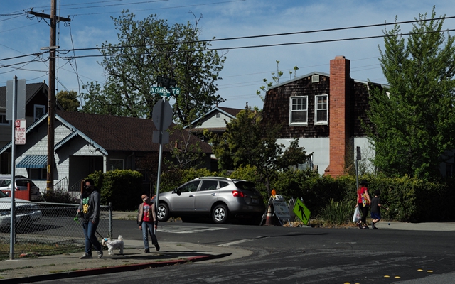 在美国加州旧金山湾区,行人从小城圣马特奥的街头走过。新华社资料