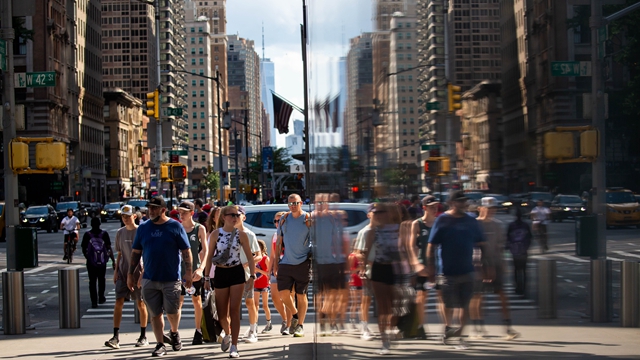 6月15日,人们走在美国纽约街头。
