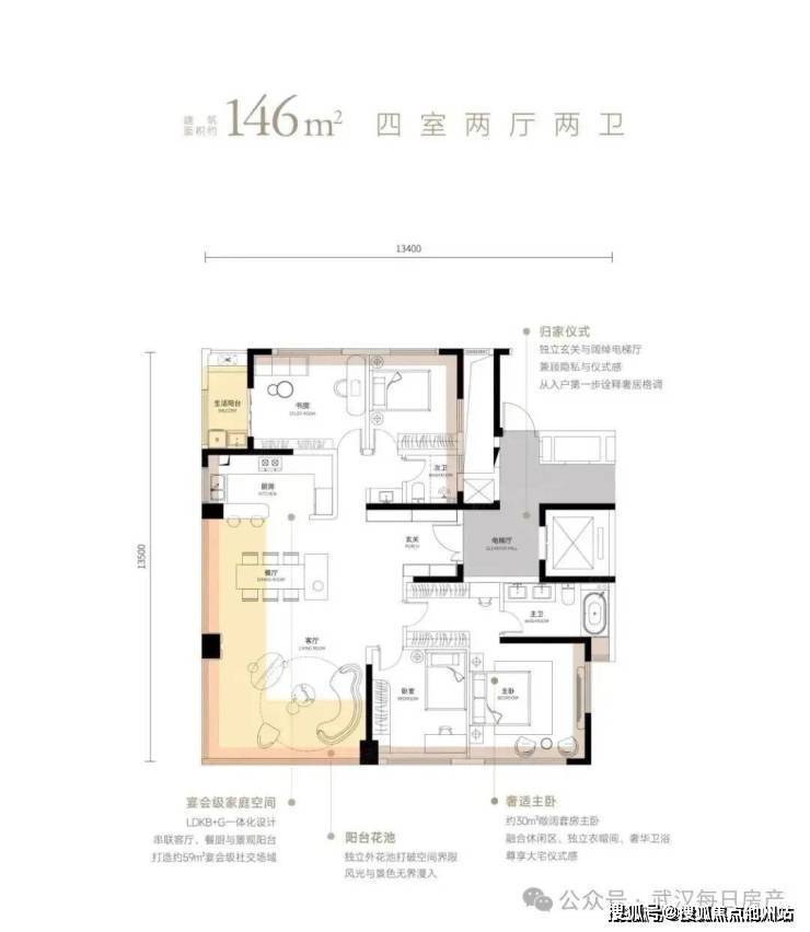 毫不夸张的说,武昌源著在户型设计上花了大功夫,不仅实现了准四代住宅的“空间越级”,还做到了“尽善尽美”,生活在其中的每一个家庭成员,都能自得其乐!