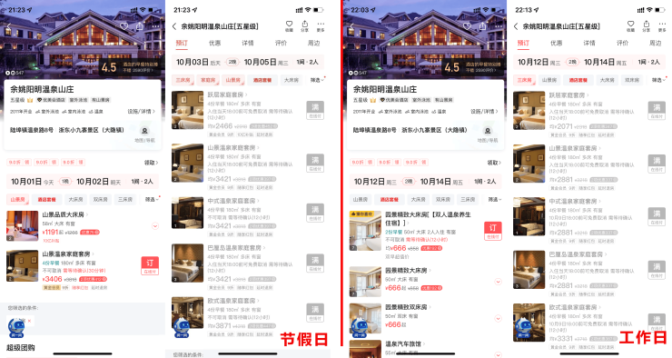 正常套房30㎡—50㎡:价格:1400元—2000元/天(家庭套房稀缺)