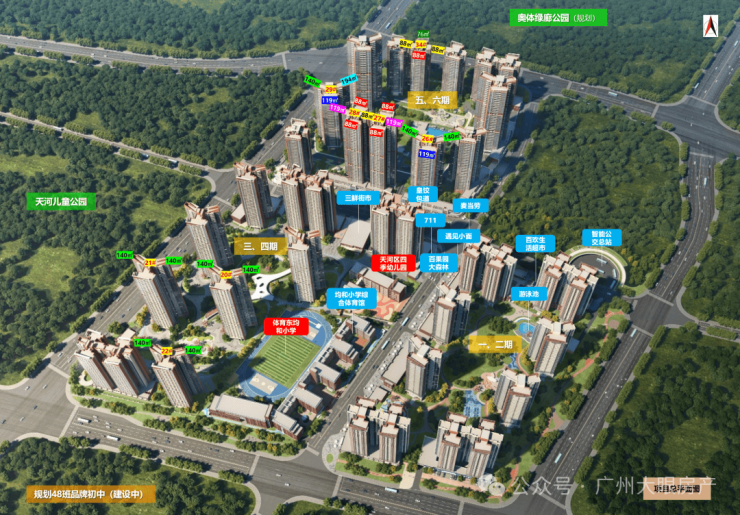 社区配套约6700㎡【天河教育局直属公办四季幼儿园】已开学,约2400㎡托儿所,就近享受全龄教育