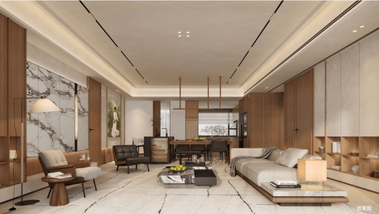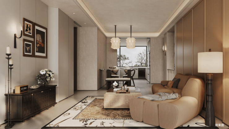 公区以海派为笔触,染现代之气韵,融汇成一方优雅生活的序章