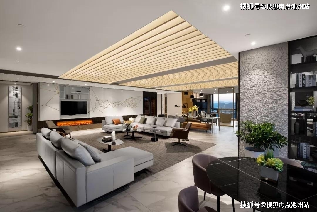 △蓝城·澜宸500㎡样板房实景图更准确的说,别墅的空间追求的是仪式感,而大平层的空间追求的是居住感。