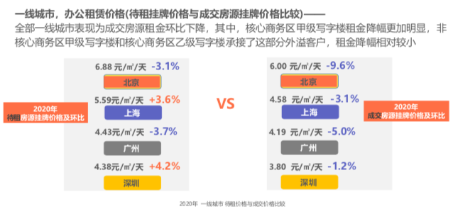晓楼平台负责人匡健锋表示,伴随2020年下半年经济复苏,商办市场下行趋势放缓。“北京上海等一线城市重点商圈空置率降幅均在年末收窄,在下游需求端,客户对价格更加敏感,TMT行业仍为疫情防控期间的租金贡献担当,传统产业的互联网化升级和人工智能等科技创新企业有望成为新的市场增量。”