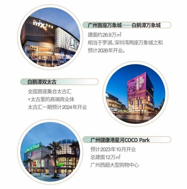 约2km范围内双太古、华润万象城等旗舰商业进驻,“三馆合一”湾区文化地标完工,TOP级商业与城市地标荟萃,加速兑现世界级商圈。