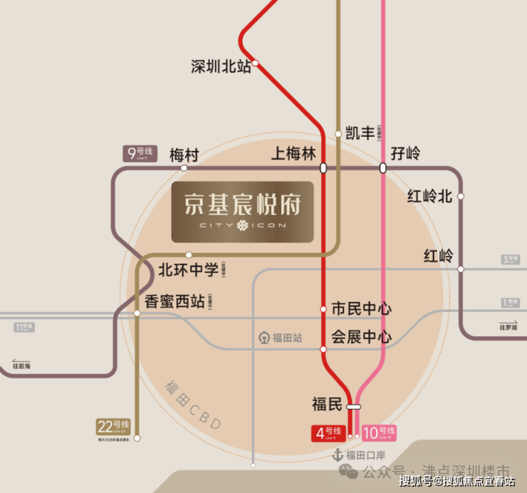【地铁】地铁4/9/10/22号线(在建中)四轨汇聚,直距约300米内4/9号线上梅林站、梅村站,3站市民中心