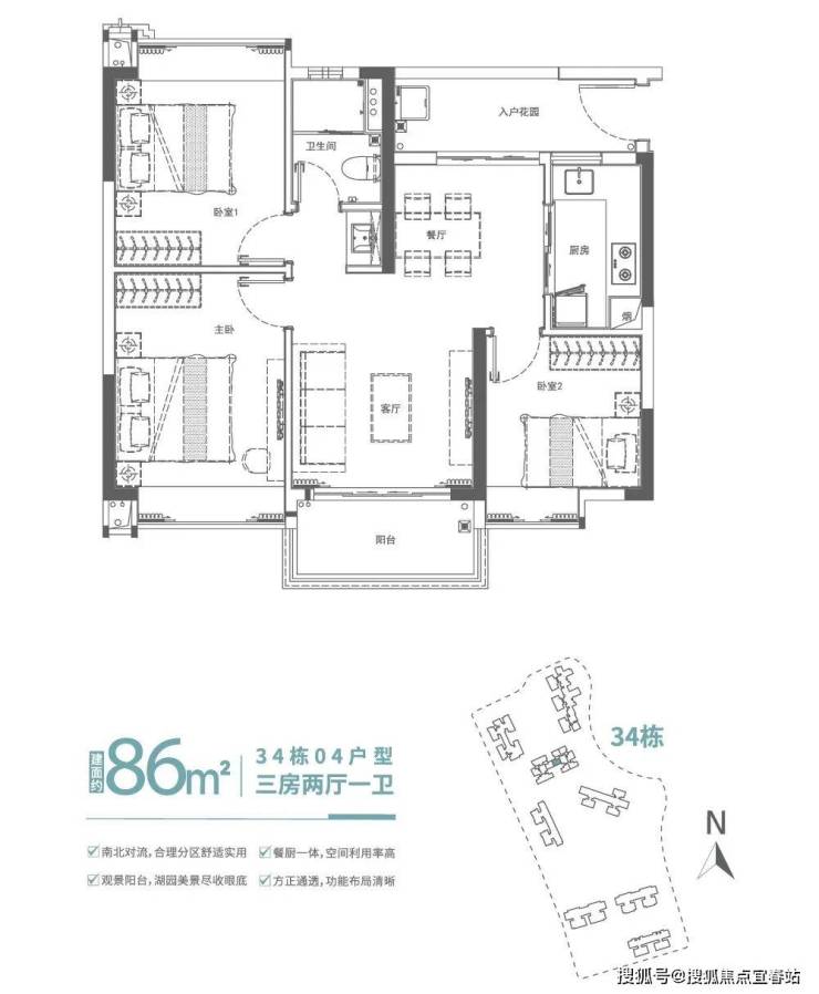 建面约86㎡南北通透三房,南北对流,采光通透,空间视野开阔,布局方正舒适实用,客厅直通南向阳台,引更多清风和阳光入室,缔造质感生活。